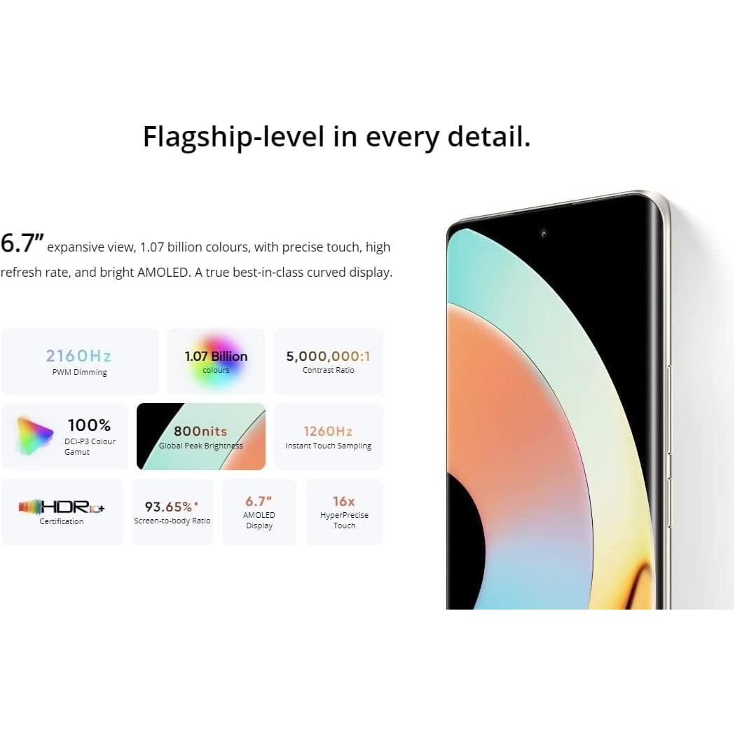 Display your personality and make a fashion statement with the realme 10 pro+ 5g, which gives you a fantastic user experience. with its 17.01 cm 6.7 AMOLED curved display screen that has 2160 hz pwm dimming, tuv rheinland low blue light certificate, 1260 hz turbocharged touch sampling, and x touch anti mistouch algorithm, this smartphone makes a great advancement. with its 108 mp prolight camera, this smartphone also provides you with amazing photographic and filming features that let you capture priceless memories. this smartphone further advances the advancement by providing you with a dimensity 920 5g processor, which is completely compatible with all 5g bands. moreover, the realme 10 pro+ 5g's large 8+8 gb dynamic ram arrangement allows you to view many files or programmes, play games, and switch between apps without experiencing any latency.